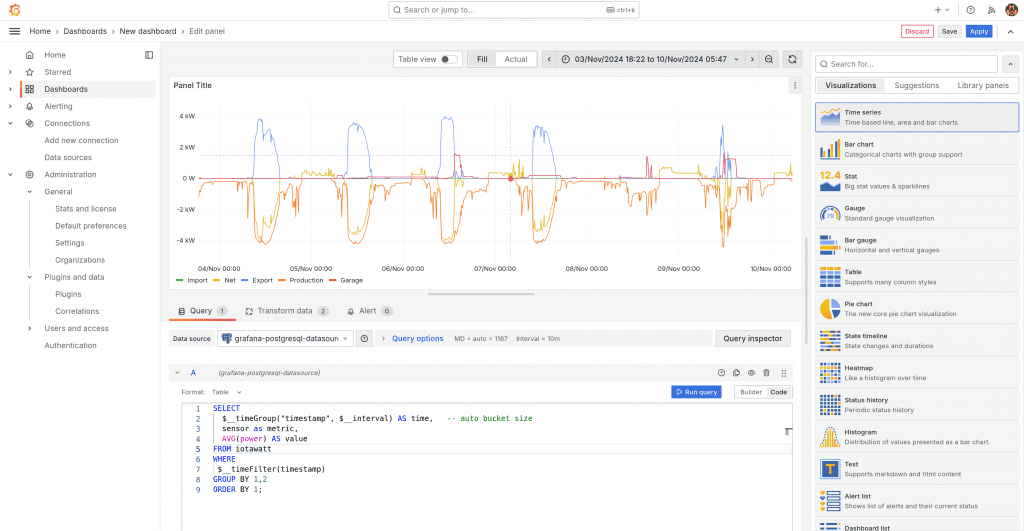 • Migrate to TimescaleDB as Influx v2 (flux) is not actively developed. This is a pity as flux is a nice language.