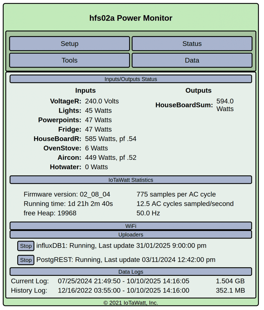 Ben Thekkel from PhiSaver implemented a new class for the IotaWatt codebase, which we’ve flashed onto Iotawatt. We’ve provided a pull request to the original repo. You can contact us if you’d like to use it in the meantime.